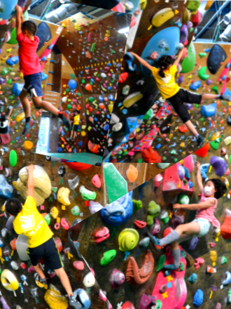 スタッフが作成するクライミングルートを登ります。基本的な動きとクライミング発想力を付ける為、他の子と共に課題(ルート)をセッションしながら自分の実力を高め合っていきます。